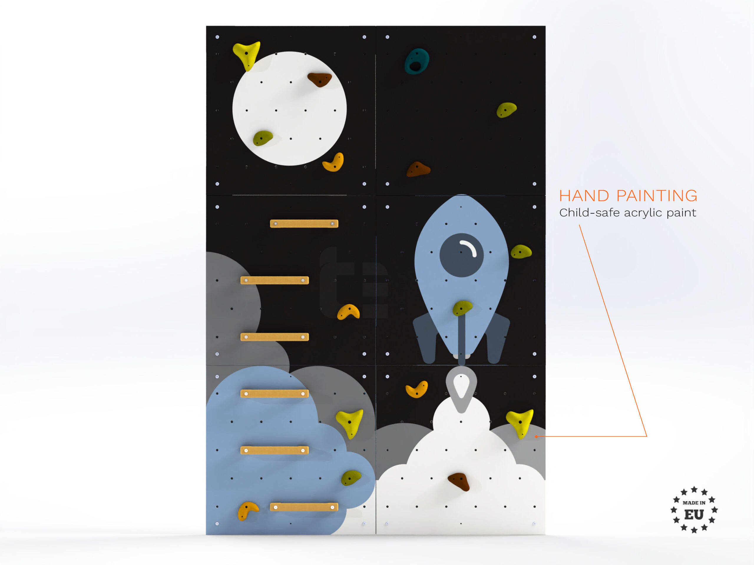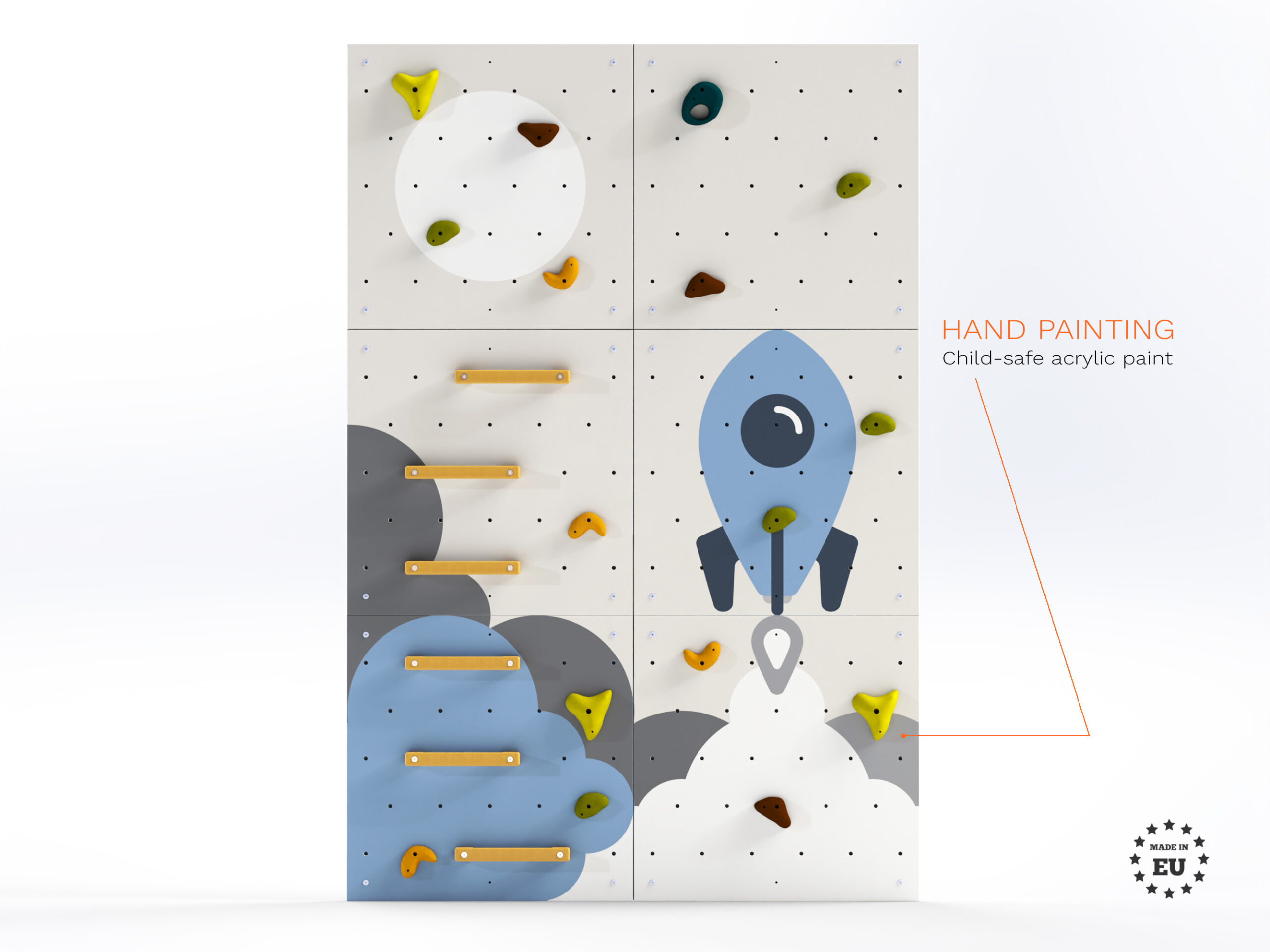 LEZÚŇ climbing wall for kids. Create a playful space for your children with a kids’ climbing wall. Your child will be motivated to be physically active. The climbing wall is a beautiful addition to your child’s room. It’s easy to install and all necessary components are included in the price. We also send detailed assembly instructions.